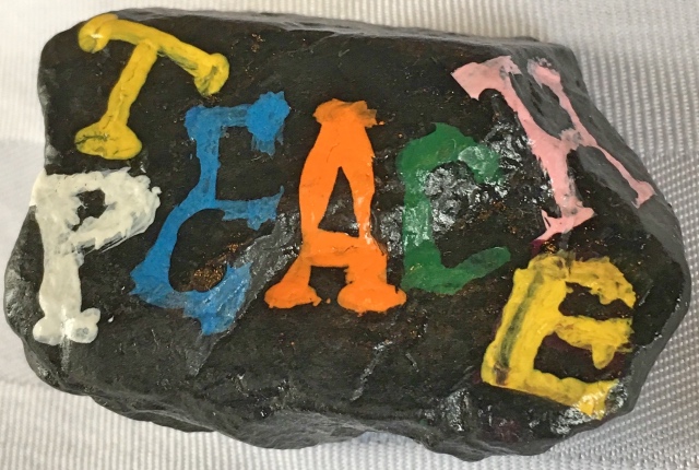 At the end of the second drum circle, I had the pleasure of meeting and chatting with Alfreda Penney, a retired school teacher. During our conversation she said "You teach peace," and kindly presented me with a "Teach Peace" painted rock memento.